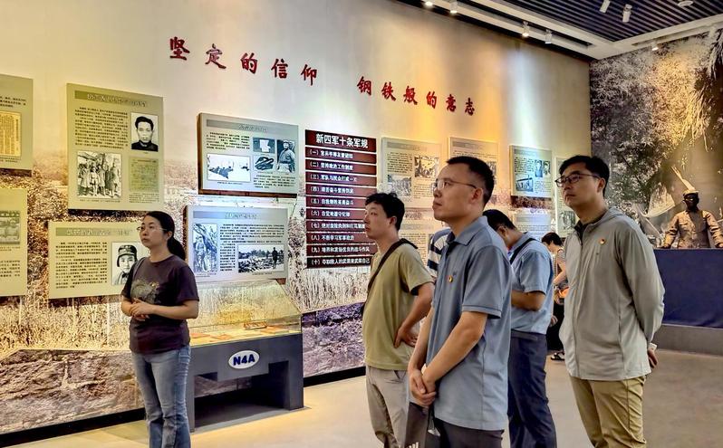 活动中,支部党员通过沉浸式学习新四军抗战史实,深刻感悟“听党指挥、报国为民”的铁军精神内核。在讲解员的引导下,大家重温了苏南抗日根据地的峥嵘岁月,从珍贵的文物、影像和历史文献中体悟革命先辈的忠诚信仰与纪律作风。随后,全体党员面向党旗庄严宣誓,重忆入党初心,并在新四军廉政建设史实馆开展警示教育,从红色政权建设经验中汲取廉洁奉公、克己奉公的精神力量。