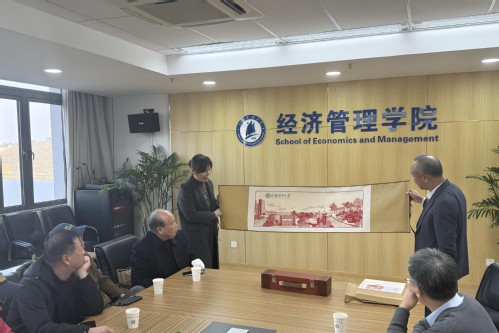 在座谈会上,经管学院党委书记尹洁代表学院向校友们表示热烈的欢迎和诚挚的问候,详细介绍了学院在学科建设、人才培养、社会服务等方面取得的新发展、新成果。为表达对校友的深情厚谊,尹洁代表学院向校友赠送了寓意深远的剪纸摆件与画卷,两校区的标志性建筑跃然纸上,象征着文化传承与情感延续。