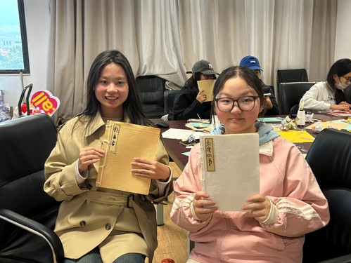 方寸之间,自有天地。活动伊始,主持人以“鱼鳞册”“龙门账”等古代商业记录工具为切入点,梳理了从传统账册到现代商业计划书的演变历程,强调“科学规划”在商业实践与个人发展中的重要意义。随后,现场演示了传统“四眼线装法”,引导同学们在折页、对齐、穿针引线中体验古人严谨细致的工匠精神。