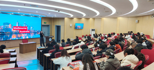 上海育璀教育海外留学咨询部经理鲍彦廷系统介绍了墨尔本的城市环境、文化氛围、生活成本及中澳合作办学项目的独特优势。她指出,该项目可帮助项目学生实现中澳双学位对接,申请顶尖学府硕士研究生,拓展国际视野以及增强就业竞争力。