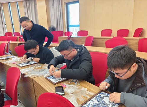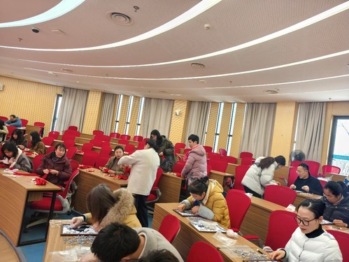 此次活动设置了织锦拼贴、幸福结编制、陶瓷画创作三项手工体验项目。在织锦拼贴区,教师们通过创意剪裁与拼接,将马年新春元素融入创意作品;在幸福结编制区内,大家认真学习中国结编织技巧,穿线、打结、缠绕,指尖流转间,寓意团圆美满的中国结逐渐成型;陶瓷画创作区则吸引了教师们勾勒马年吉祥图案,悉心描绘对新春的美好期许。活动现场气氛热烈,大家在手工创作中领略传统文化之美、传递新年祝福、增进情感交流,进一步营造了和谐向上的文化氛围。