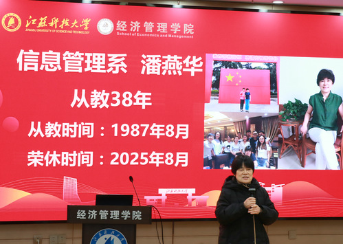 会议第四阶段,学院隆重举行2025年度教职工荣休仪式。学院全体教职工共同向学院5位荣休教师致以最真挚的敬意与最恳切的祝福,荣休教师代表吕向阳、潘燕华深情回顾了数十载执教岁月,由衷感谢学校与学院的悉心培养,感恩同事们的长期支持与温暖陪伴。尹洁号召学院青年教师传承荣休教师精益求精的治学态度、甘于奉献的职业情怀和胸怀家国的责任担当,在教育强国的新征程中勇担使命、接续奋斗。