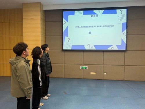紧随其后的“国家安全名词抢答赛”则是一场脑力与速度的较量。题目紧扣《国家安全法》《反间谍法》及总体国家安全观要义,同学们争相竞答,展现出扎实的知识储备与昂扬的精神风貌,进一步增强了“国家安全,人人有责”的使命感。